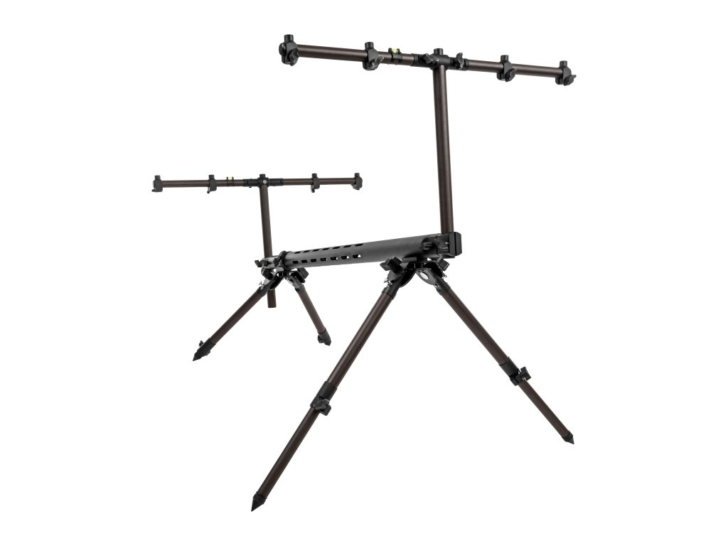 Fencl Rodpod Xtreme stojan na pruty. Spojuje nejmodernější 3K karbon s precizně opracovanými kovovými prvky. Elegantní černý design podtrhuje jeho sílu i lehkost a dává rybářům pocit jistoty v každé situaci – od divoké řeky až po klidné jezero.