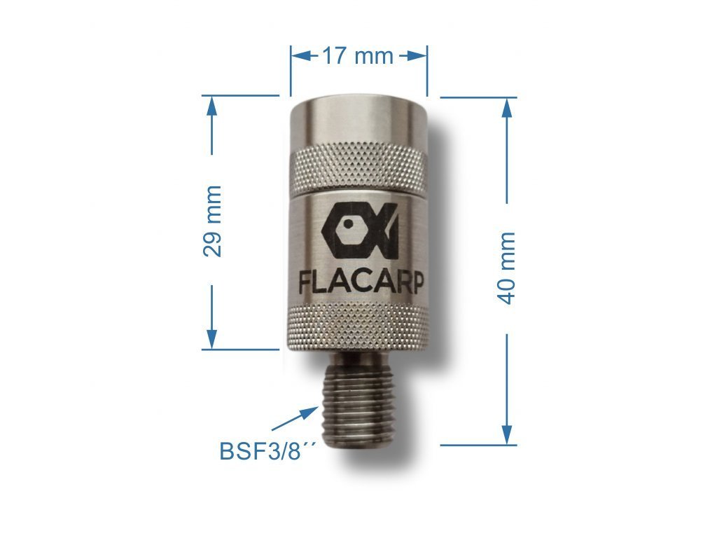 Magnetická rychlospojka z nerezové oceli, se silným neodymovým magnetem. pro snadné odpojení signalizátoru záběru vyrobeno z nerezové oceli. To zaručuje vysokou pevnost a dlouhou životnost. pevně drží díky dvěma silným neodymovým magnetům vnitřní osmihran zaručuje snadné natočení do požadované polohy nesmazatelný laserový popis originál výrobek FLACARP, vyráběno v České republice v balení jeden nebo dva kusy Technické údaje: celkové rozměry: 40 x 29 mm hmotnost: 47 g materiál: nerezová ocel závit: BSF3/8´´ - kompatibilní s většinou signalizátorů a stojanů na trhu