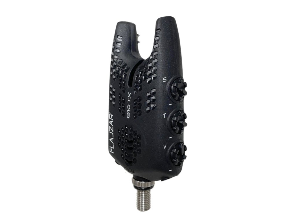 Tento zcela český signalizátor Q10 TX je nabitý novými funkcemi, jako jsou funkce CONNECT (kontrola dosahu s přijímačem RX MAX), funkce alarmu proti krádeži prutů, nebo funkce automatického zvýšení citlivosti. Potěší také další konektor pro swinger - nyní tak máte možnost si zapojit nejenom svítící swinger, ale i např. svítící uši. Vylepšením je také napájení dvěmi AAA bateriemi, což znamená, že výměna baterií je nyní snazší a efektivnější.